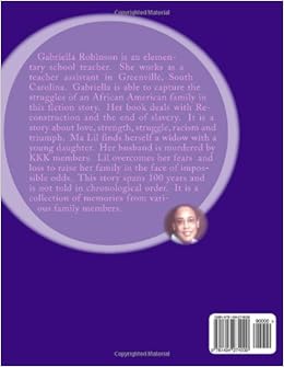 Ma Lil depicts the struggles of an African American family during a one hundred year period. The story begins in 1865 with the birth of the main character Lil. It is a story of love, strength, struggle, racism and triumph. Lil finds herself a widow with a young daughter. Her husband was murdered by KKK members. Lil overcomes her fear and loss to raise her family in the face of impossible odds. The story is not told in any chronological order. The story is a collection of the memories of three generations of family members.